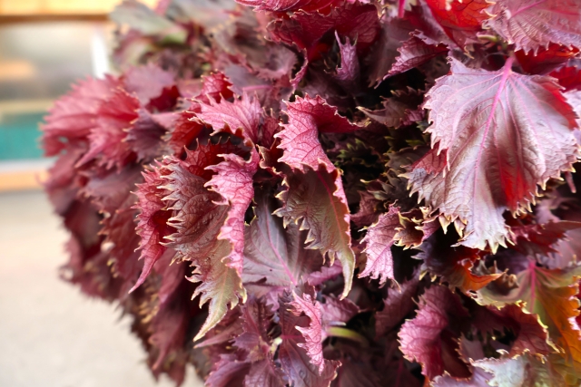 ・ちりめんじそ その名の通り、葉がちりめん状に縮れているのが特徴です。香りが非常に強く、梅干しや漬物を作る際によく使われます。